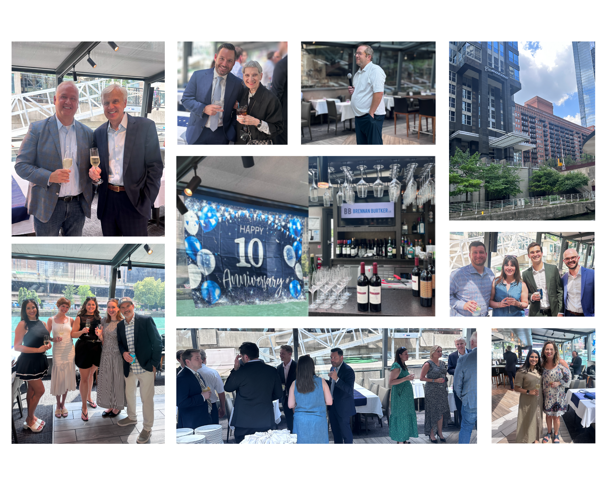 Brennan Burtker LLC celebrated its 10-year anniversary on July 3, 2025. On the eve of the Fourth of July holiday back in 2015, we asserted our own independence for our careers and our clients by founding Brennan Garvey LLC, now Brennan Burtker LLC, and we never looked back. We are so proud and grateful to have built an established successful law firm for the defense of the medical profession based on our core values of hard work, integrity, and mutual respect. We cannot believe that 10 years have flown by! To celebrate this special occasion, the firm closed on July 2 so that the entire BB family could relax on a river cruise on a beautiful Chicago evening and toast to our successful first decade. We look forward to our next decade of success as we march into our brightest future yet with our talented lawyers, dedicated staff, and wonderful clients! Brennan Burtker LLC thanks every individual and organization who has supported us from the very first day of our exciting new enterprise!